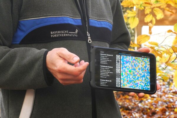 Nummer 82 muss weg, damit Nummer 85 ungehindert wachsen kann. Denn 85 ist ein Z-Baum, ein Zukunftsbaum mit Potential, lautet das Urteil im Testlauf. Jeder Baum wird durch einen farbigen Punkt auf dem Bildschirm abgebildet. Wobei jeder Farbe eine andere Bedeutung zugrunde liegt. Gelbe Punkte stehen z. B. für einen wirtschaftlichen Nutzen. Wellheims Bürgermeister Robert Husterer resümierte, dass man durch die Daten auf dem Tablet einen anderen Blick für die Bäume bekomme. Eine einmalige Möglichkeit in der Region, waren sich die Gammersfelder Rechtler einig und lobten die gute Zusammenarbeit.