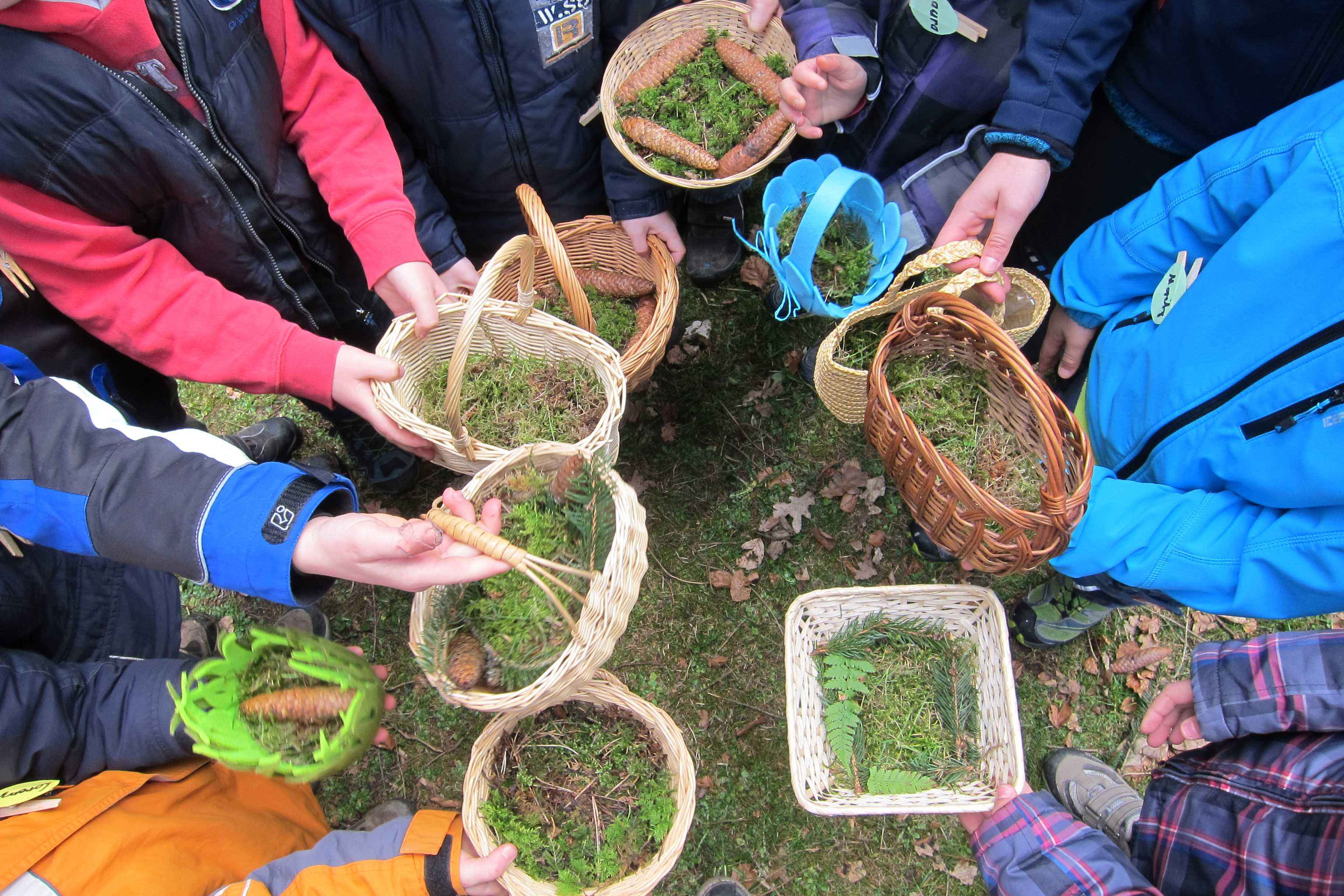 Wir sammeln Waldmaterialien für unsere eigenen kreativen Wald- Ostereier und bemalen und bekleben sie.