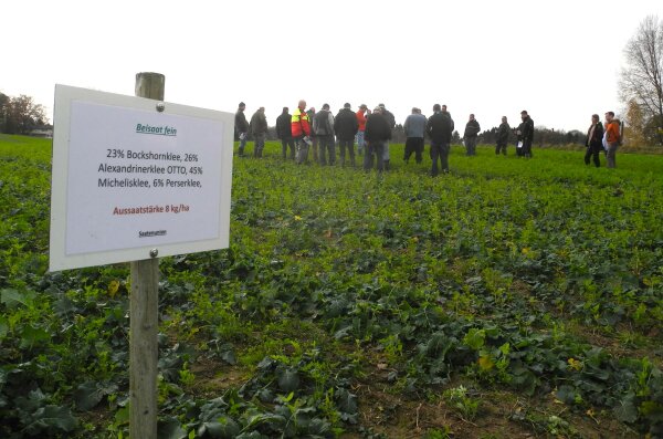 Das Amt für Ernährung, Landwirtschaft und Forsten Ingolstadt-Pfaffenhofen lud am 14. November interessierte Landwirte zu einer Informationsveranstaltung zum Thema Beisaaten im Körnerrapsanbau ein. Auf einer Demonstrationsfläche in Hettenshausen wurden fünf verschiedene Beisaatenmischungen vorgestellt und mit einer Kontrollfläche ohne Beisaat verglichen. Ziel der Versuche ist es, ungenutzte Bodenflächen zwischen den Rapspflanzen im Spätsommer bis Herbst durch Beisaaten zu nutzen, um Kohlenstoff in den Boden einzubringen und das Bodenleben zu fördern